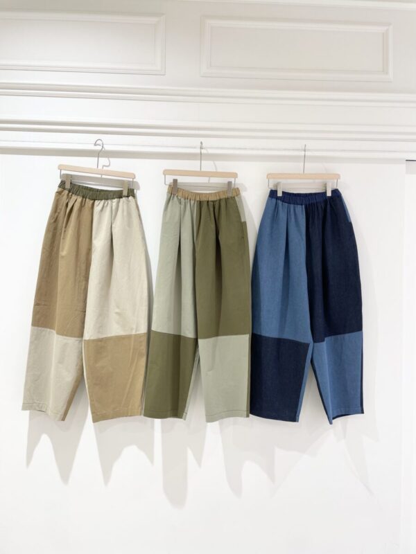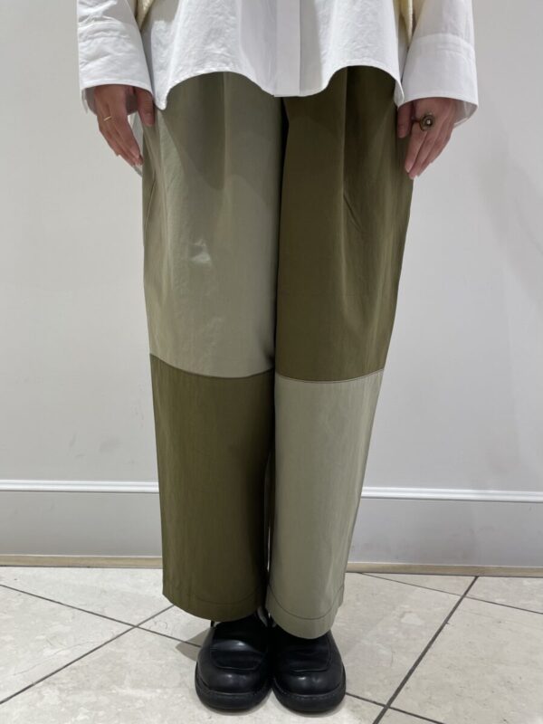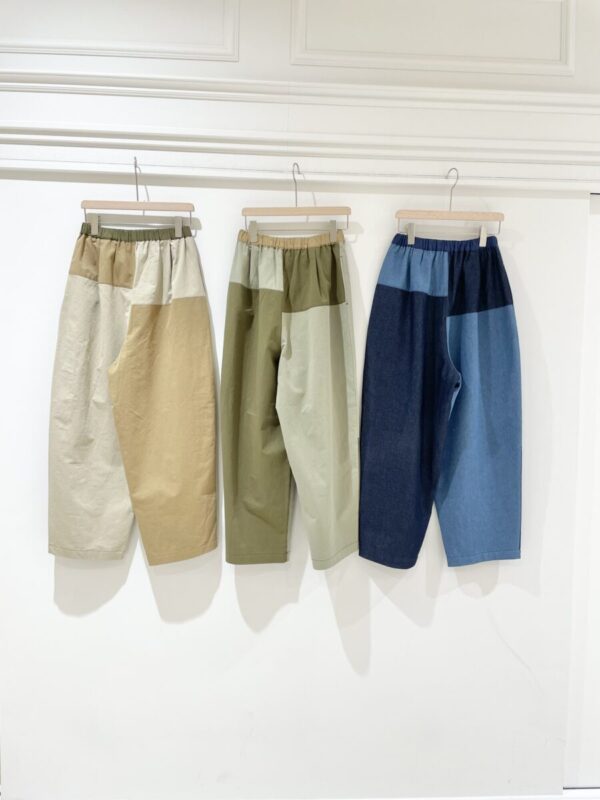 ウエストタックでヒップラインには丸みがあり裾にかけてやや絞っているバルーンパンツのようなシルエットです。