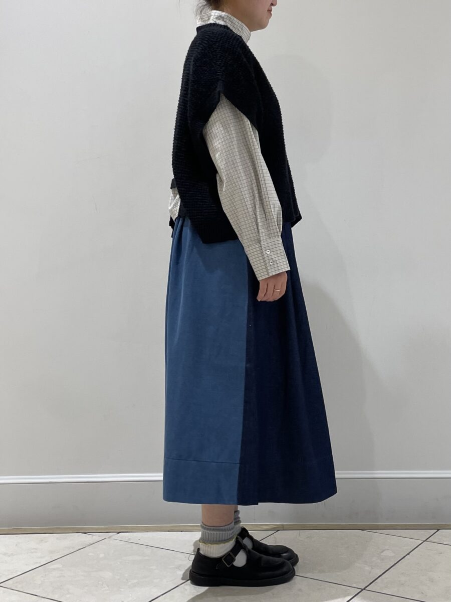 シルエットも余裕があるので、ロンTやブラウスなどとレイヤードしても可愛いです。