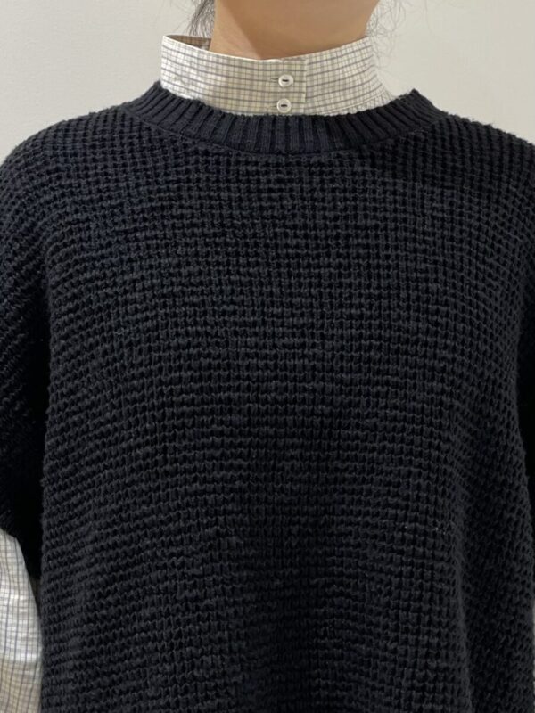 ナチュラルな風合いが魅了のワッフル編みニットベストで丈もショート丈なのでパンツでもスカートでも合わせていただけます!