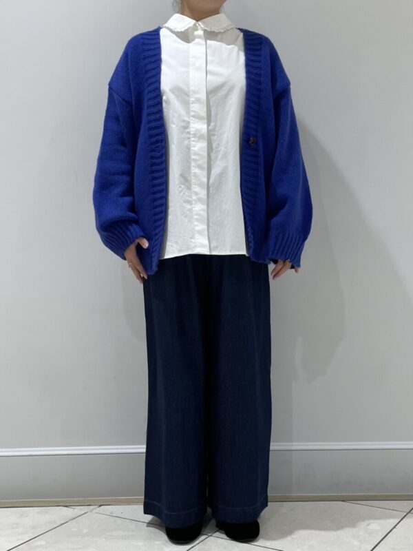シンプルなのでカーディガンなので、ガーリーなブラウスを入れると可愛く着て頂けます。