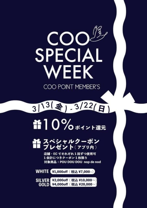 ≪ COO special WEEK ≫と期間限定ポイントアップのお知らせ♩